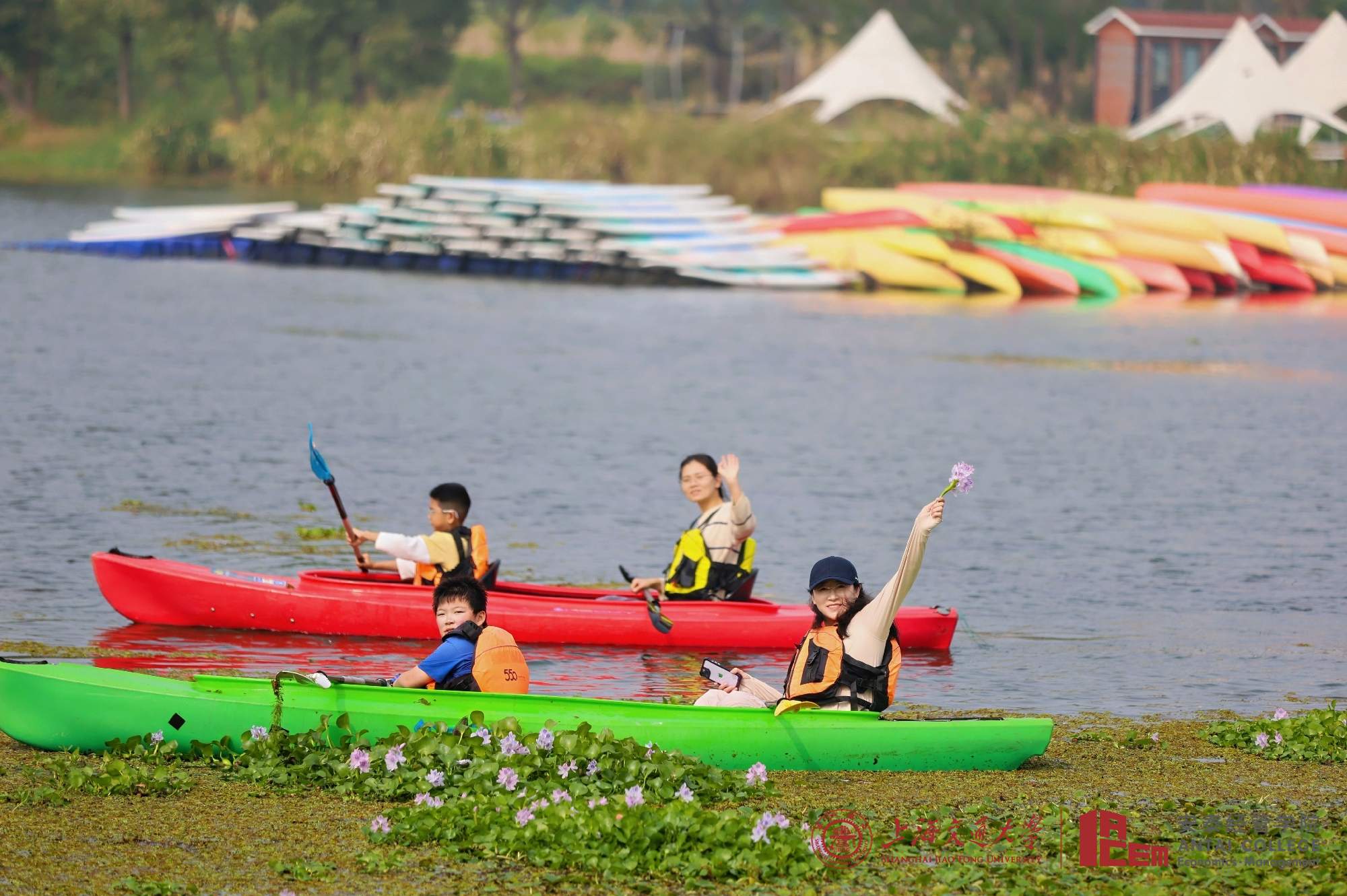 活动现场,亲子体验组在营地周边湖面悠闲划行,彩色皮划艇在水面穿梭,家长与孩子或挥手欢笑,或驻足欣赏落日彩霞,在亲子互动中尽享惬意时光。而勇于挑战的年轻教工则开启了4KM的 “小亚马逊”环线之旅,历时2个多小时的水上旅程,一路被水杉、芦苇荡、农田、古桥、野花等美景环绕,大家在划行中既欣赏了生态风光,又充分锻炼了身体,感受运动与自然融合的魅力。