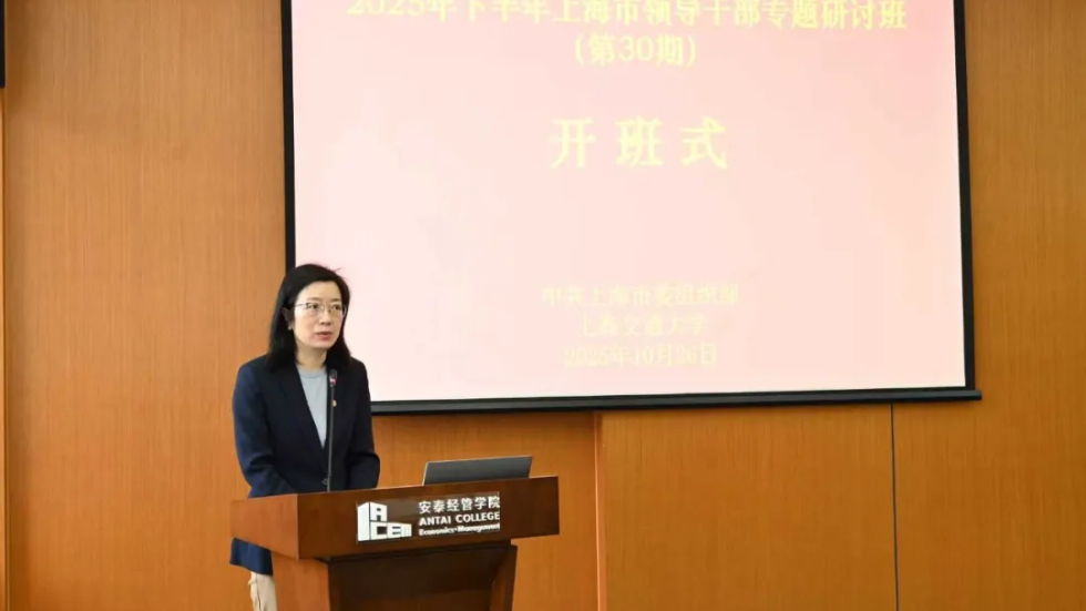 为深入学习贯彻党的二十大和二十届四中全会精神,引导干部不断增强履职本领,为国担当,勇为尖兵,以上海高质量发展服务全国发展大局。由中共上海市委组织部委托上海交通大学主办,上海市干部教育培训中心、安泰经管学院承办的上海市领导干部专题研讨班(总30期)于2025年10月26日在上海交通大学安泰经管学院开班。