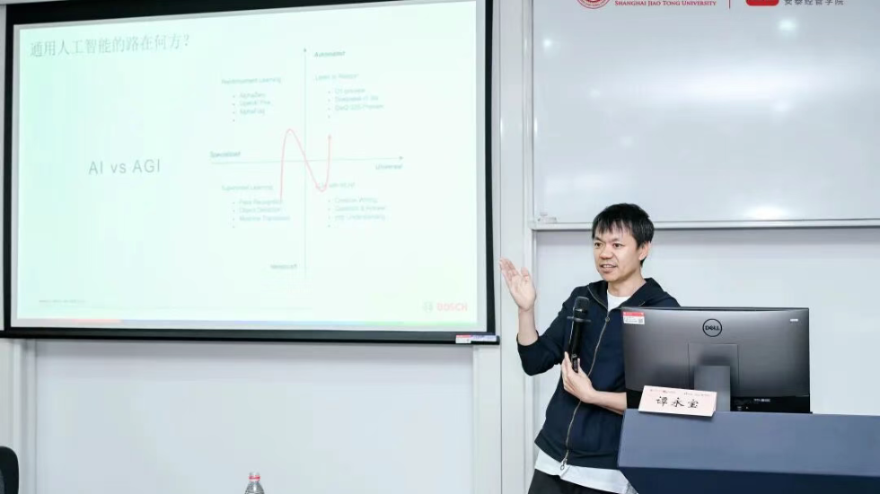 博世中央研究院人工智能研究总监、中国CEO创新管理(38期)校友谭永宝,与贵州数据宝网络科技邮箱公司合伙人,轮值CEO肖斌联袂主持。谭永宝深入剖析了AI从技术到产业的落地路径,强调“基础模型与产业场景深度融合”是关键。肖斌则一针见血地指出,当前AI发展的核心瓶颈在于“数据困境”——“找不到、不可靠、被滥用”,并预见垂直领域的专业智能将是未来蓝海,其胜出关键在于对行业的深度认知与高质量数据的获取能力。