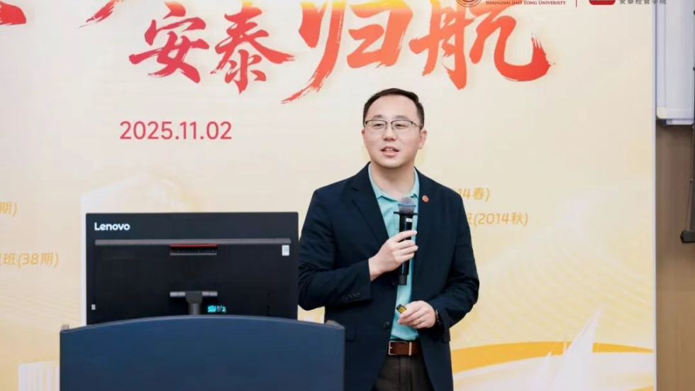上海交通大学安泰经管学院副院长桑大伟为本次返校的校友们讲述了学院10年来的飞速发展。以交大安泰智库如何服务国家发展为主线,分享了安泰教授在大城市发展策略、主动健康、世界一流企业标准、制算链协同优化等领域的重大研究贡献。桑院长表示,安泰独有的全品类培养体系与顶尖师资,是赋能企业家应对不确定时代的核心底气。