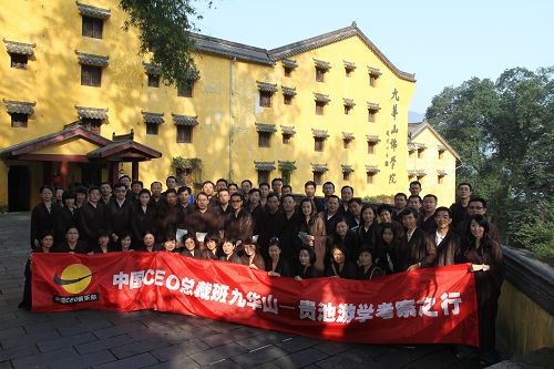 2010年9月17日上海交大安泰经济与管理学院CEO总裁研修班28、29期两班同学于中午13点出发统一乘坐大巴傍晚抵达九华山佛文化接待中心入住休息。