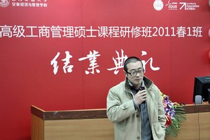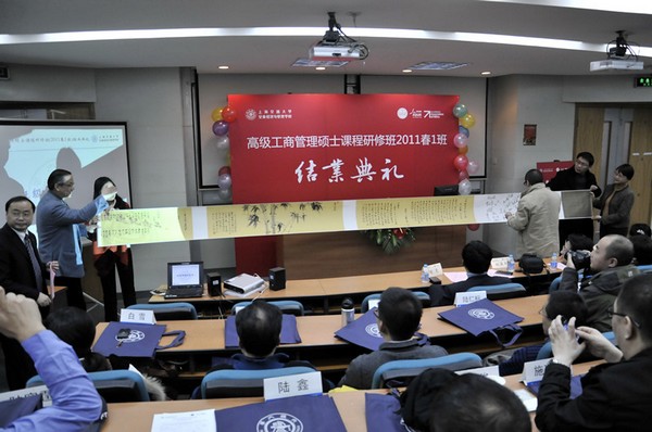 2012年2月26日下午,高级工商管理硕士课程研修班(2011春1班)在北楼104教室举行了隆重的结业典礼,出席结业典礼的领导有安泰经济与管理学院院长助理赵心耘老师,安泰经济与管理学院高层管理教育培训中心主任周丽副教授、副主任姜云一博士。