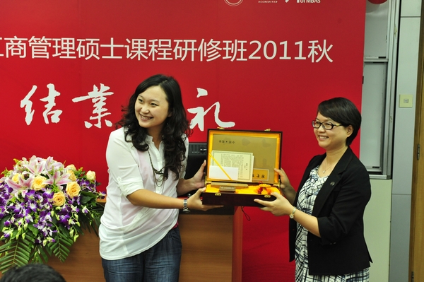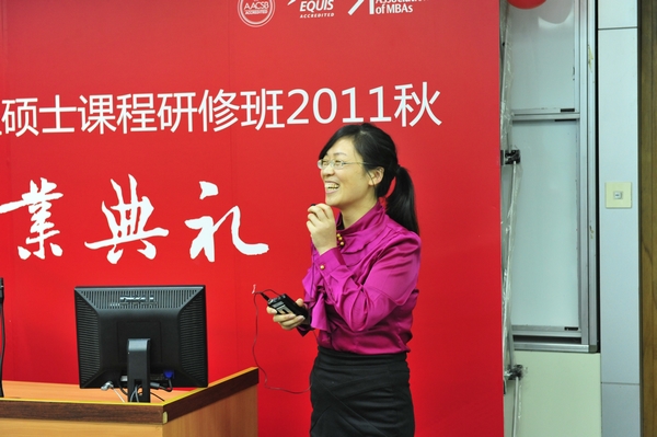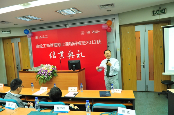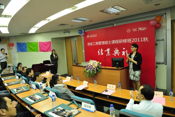 2012年10月14日下午在北楼103室高级工商管理硕士课程研修班(11秋)举行了隆重的结业典礼。上海交通大学安泰经济与管理学院培训中心主任周丽副教授、副主任姜云一博士出席了典礼。