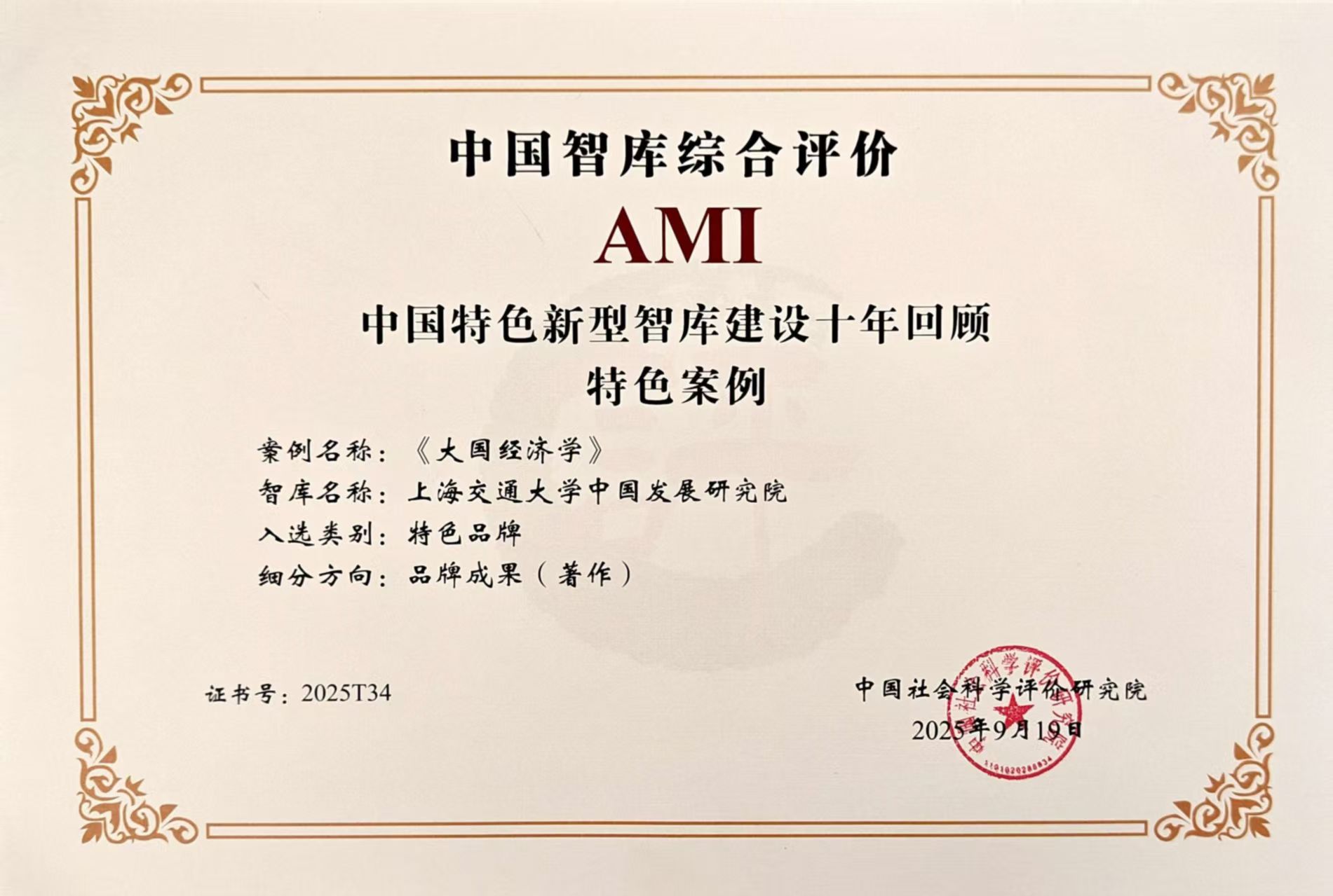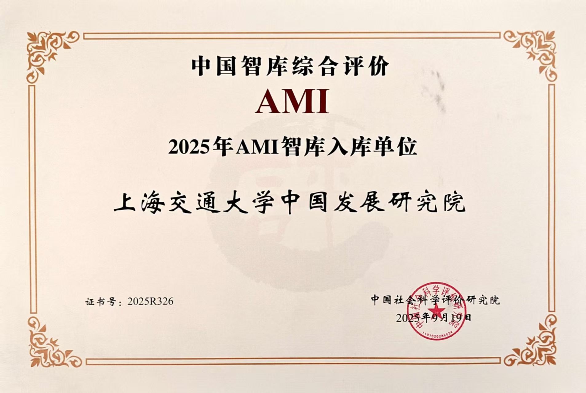 近日,由中国社会科学院中国社会科学评价研究院主办的第八届中国智库建设与评价高峰论坛在北京举行。论坛公布了中国智库综合评价研究项目(2025)评审结果,上海交通大学中国发展研究院成功入选 “2025年AMI智库入库单位”。