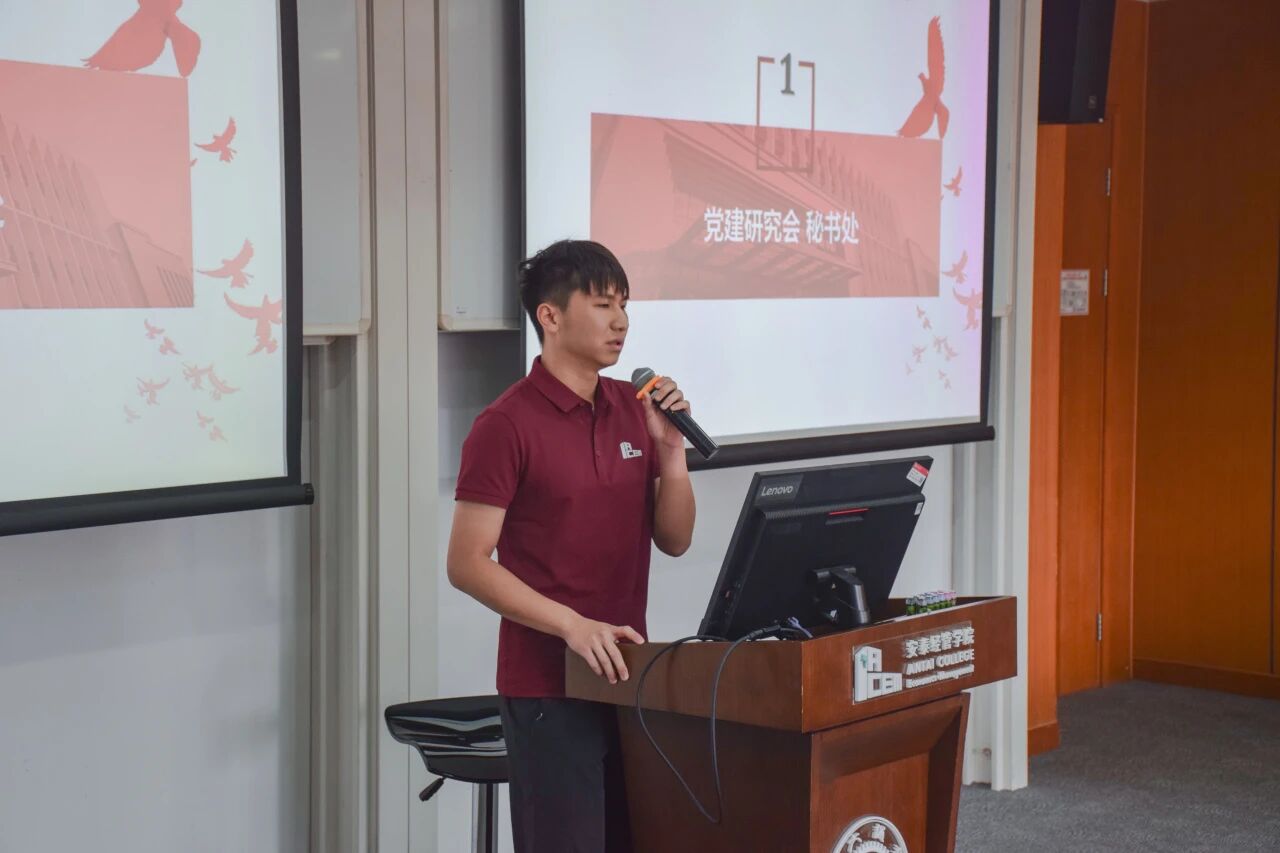 党建研究会主席团成员李元宵、赵芳、马梓淏、陈国玉分别系统介绍了分管部门培训发展部、学习实践部、秘书处和宣传联络部的职能定位和工作介绍。作为联系学院党建与学生党支部的重要纽带与先锋引领角色,党建研究会旨在搭建理论学习、政策研究和实践交流的高端平台,汇聚一批对党建有热情、有思考的学生骨干;后续将通过组织开展支部共建、党员发展、优秀案例评选等工作,推动党建工作从“执行”向“创新”升级。