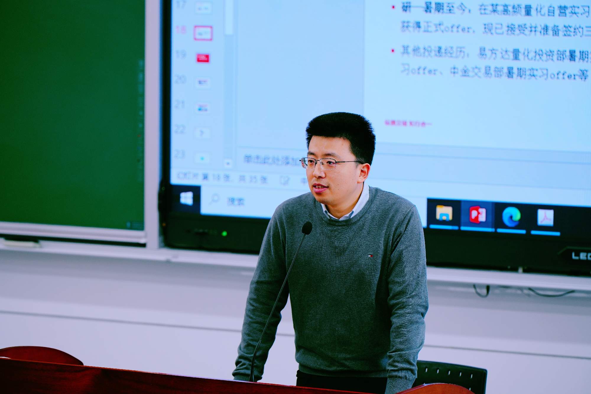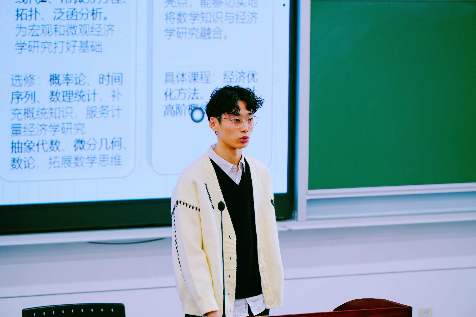 随后,数学科学学院李松挺教授从数学学科的知识体系出发,介绍了实变函数、拓扑学基础、常微分方程、概率统计等核心课程与经济学研究的密切关系。他指出,双学位学生将在系统的数学训练中培养逻辑推理能力、抽象建模能力以及坚毅的科研精神,这将成为未来学习与发展的底层动力结构。