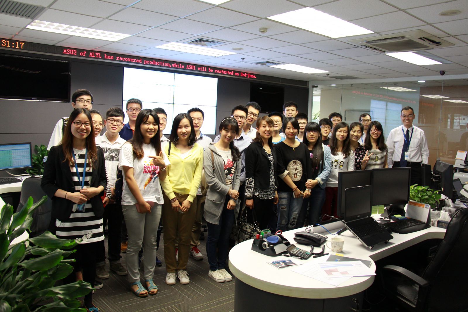 下午的环节主要围绕生产运营进行展开。由两位生产运营中心的主管和我们分享相关的技术和工厂布置,他们说,中国区有着一支非常出色和年轻的团队,发展非常迅速,更是求贤若渴。他们提到了“优化,挑战和集中”的工作理念,运营中心更是把握着各大工厂的生产命脉。之后,我们在负责人的带领下来到了公司的办公楼,参观了他们的工作环境和会议室,并有相关员工对于业务进行更深入的介绍,大家在会议室里面也针对性的进行了讨论。运营主管了解了我们的专业后,也对未来的发展方向替我们进行了展望。接下来我们都很兴奋的去参观了公司的工厂设施,包含液氧液氮的储蓄瓶等,大家头顶五颜六色的安全帽,跟随现场的生产主任在厂区转了一大圈。