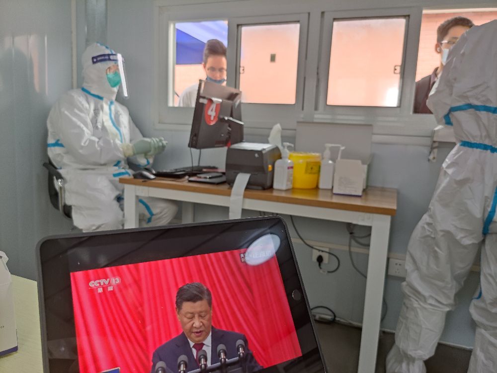 除集中组织观看学习外,各师生党支部、学生团支部、学生班级也组织师生在工作岗位、在家、在宿舍相聚线上云端灵活收听收看党的二十大开幕会直播,聚焦二十大热点。值得一提的是,今天坚守在徐汇校区核酸采样点的安泰经管学院教职工核酸采样志愿者团队在做好核酸采样工作之后,也在志愿服务工作现场收听收看了党的二十大开幕会直播。