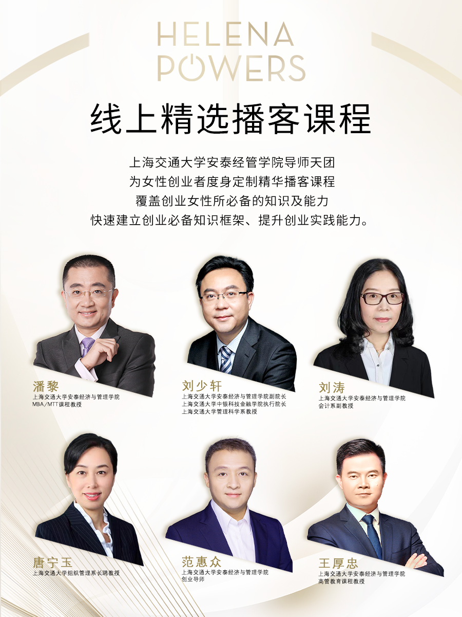 首期线下课程预计邀请约50位创业女性加入,在交大安泰导师专业指导下,提升自我能力,升级商业技能。微信搜索 “HR赫莲娜她创力量”小程序,即可报名。