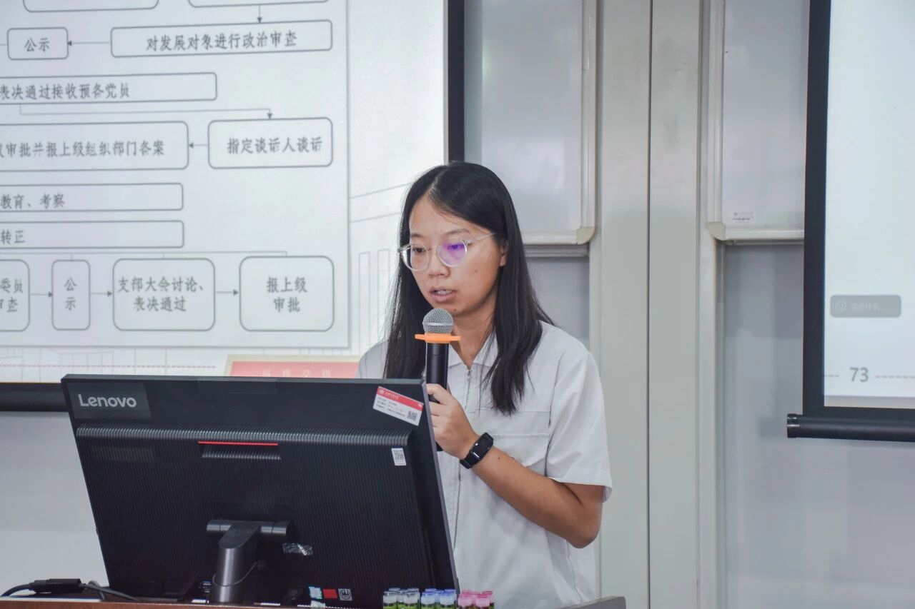解伟荣详细阐述了学生党员发展材料的具体要求和注意事项,强调完整性、准确性和规范性是确保党员发展材料质量的基础。她强调,在党员发展方面,要结合实际情况和具体规定,面向在志愿活动、学生工作、学业科研等方面表现突出的优秀学生做好吸纳培养工作。