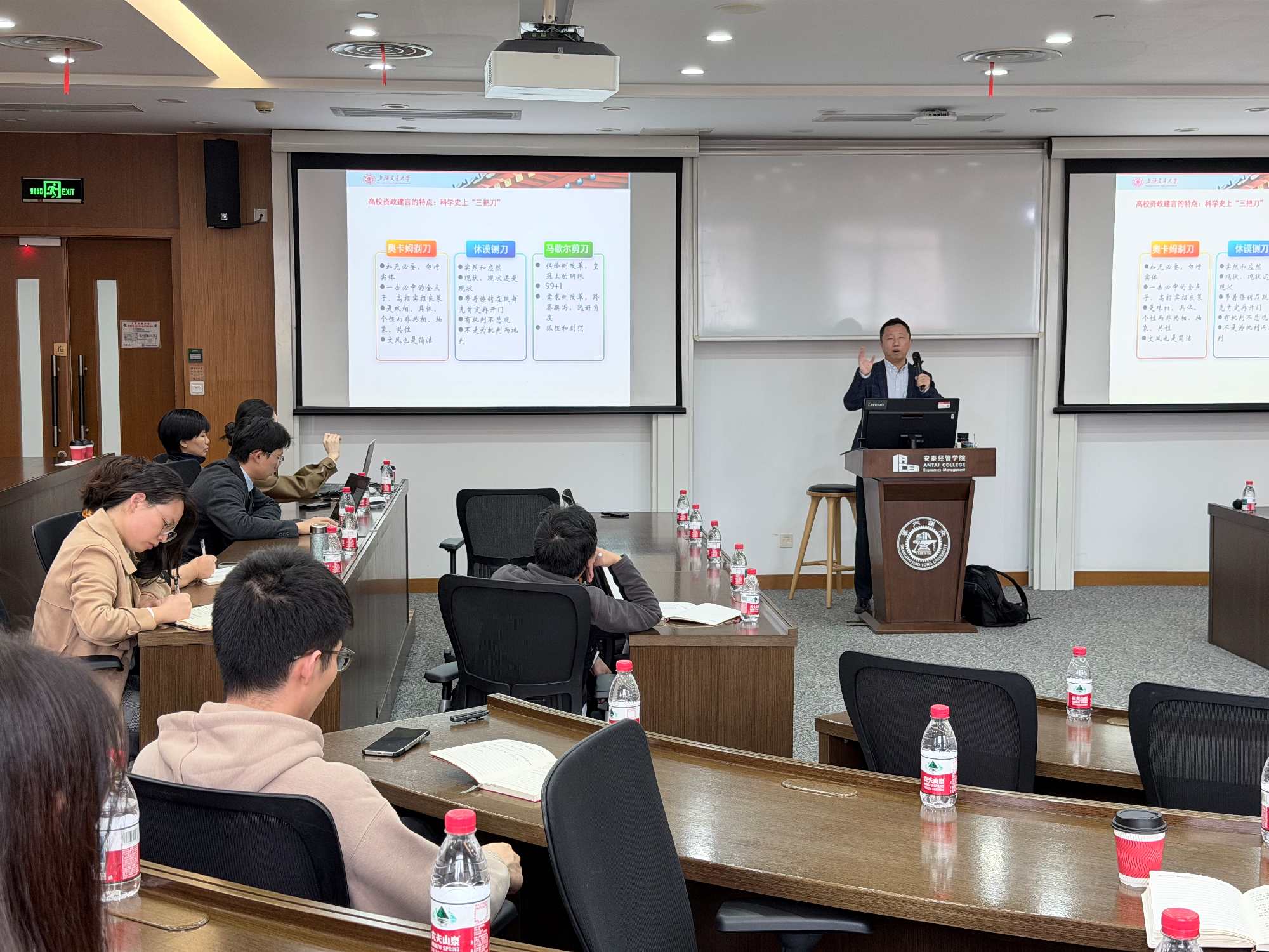 讲座围绕高校如何发挥智库功能、推动研究成果转化为政策影响力展开。熊竞从高校智库的使命与功能出发,阐述了高校在服务政府决策、推动社会治理中的独特价值。他指出,智库研究须立足理论,同时关注现实问题,真正实现“写得好”到“用得上”的转变。他通过“科学史上的三把刀”进行类比,阐释专报撰写中“简明、聚焦、前瞻”三点关键,并强调高质量智库成果应具备时效性、精准性与可操作性。熊竞还从内容策划、写作逻辑和报送机制等方面,系统阐述了高校智库高质量建言的实践路径。他结合多个真实案例,展示了智库在社会治理、应急管理、区域发展等领域的成果转化经验,强调研究者要深入基层、聚焦国家重大战略与热点问题,以学术智慧服务治理需求,推动研究成果落地见效。
