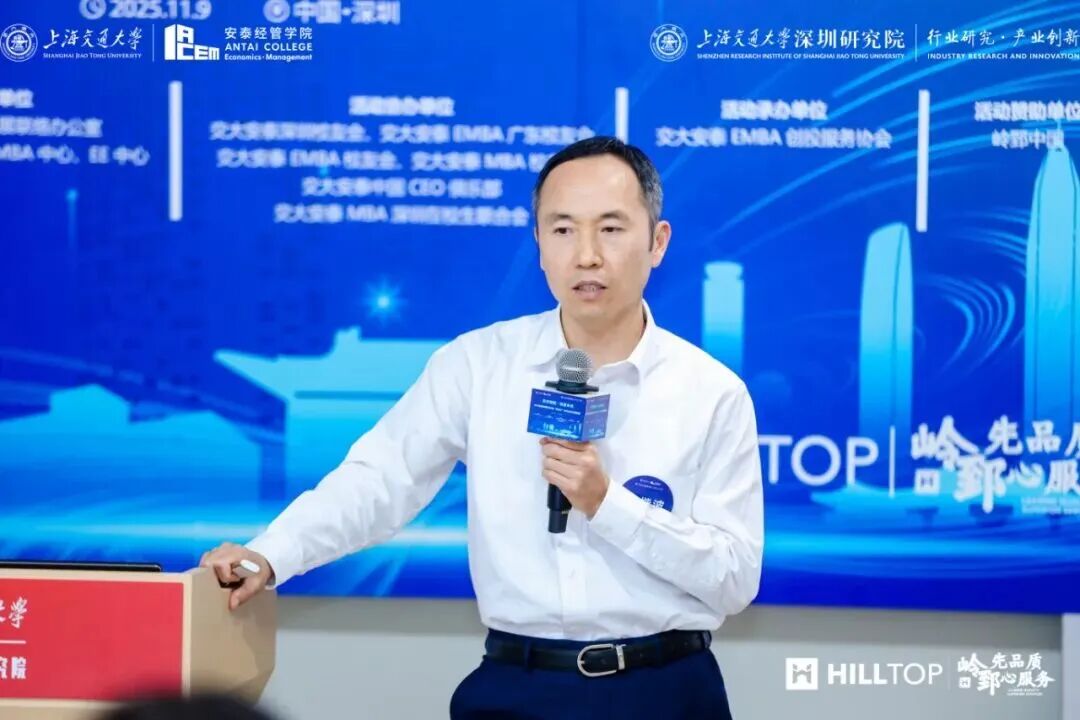 复赛开幕式上,田新民为复赛开幕致辞。他首先对远道而来的嘉宾、评委及参赛校友表示热烈欢迎,深刻阐述了上海交大在创新创业人才培养与资源整合方面的使命担当,以及深圳作为粤港澳大湾区创新引擎的独特优势。他表示,学院将持续通过“思源汇”创业大赛等品牌活动,深化校地合作、强化校友联动,为创业校友提供“全链条”支持,助力更多创新梦想在湾区这片热土上落地生根、开花结果。